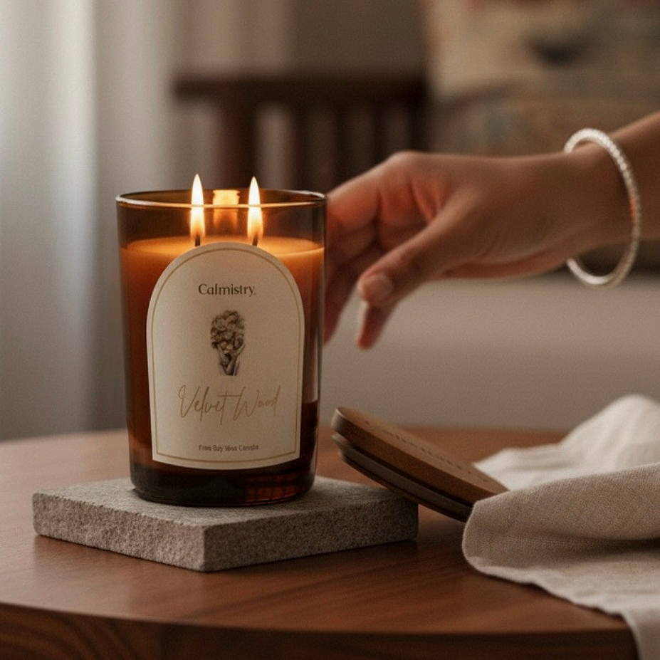 A quiet flame, gentle woods, and a moment that asks nothing of you.Where the room settles, and so do you.